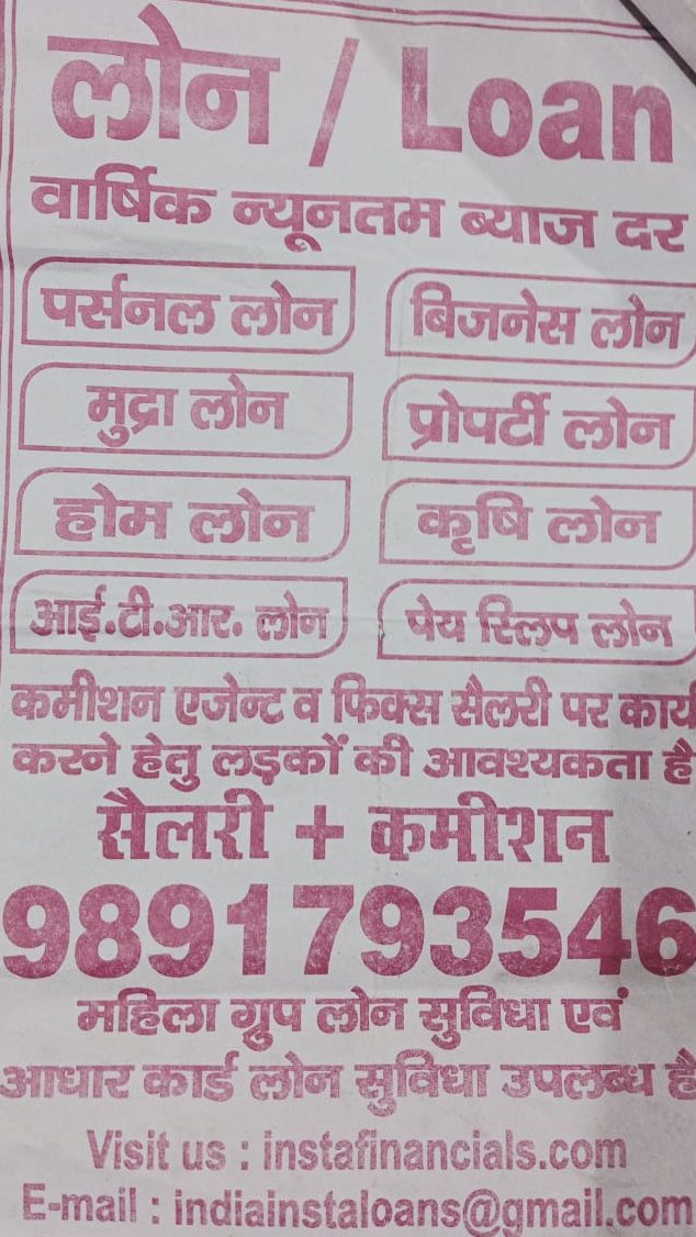 It has come to our notice that a fraudster in the name of India Insta Loan is using our website address (instafinancials.com) in his leaflet and misleading customers. The fraudster is operating in the name of India Insta Loan. They are collecting money from customers on the pretext of issuing loans. After the receipt of the advance amount they are not responding and not providing any loan.