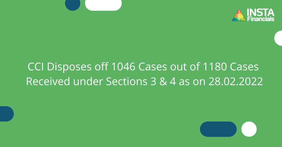 CCI Disposes off 1046 Cases out of 1180 Cases Received under Sections 3 & 4 as on 28.02.2022